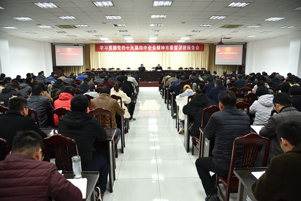 會(huì)上,市委宣講團(tuán)成員、市委黨校副校長(zhǎng)黃家盛就黨的十九屆四中全會(huì)精神作專題報(bào)告。黃家盛圍繞“黨的十九屆四中全會(huì)重大意義”、“ 中國(guó)特色社會(huì)主義制度和國(guó)家治理體系的顯著優(yōu)勢(shì)”、“十九屆四中全會(huì)的主要內(nèi)容”以及“如何貫徹落實(shí)全會(huì)精神”,進(jìn)行了深入細(xì)致的解讀。