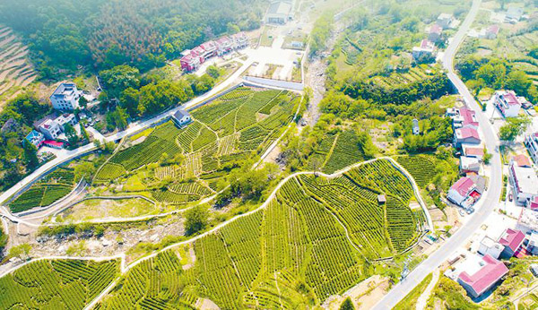 航拍金寨縣大灣村易地扶貧搬遷安置點(diǎn)的茶山。(資料圖片)