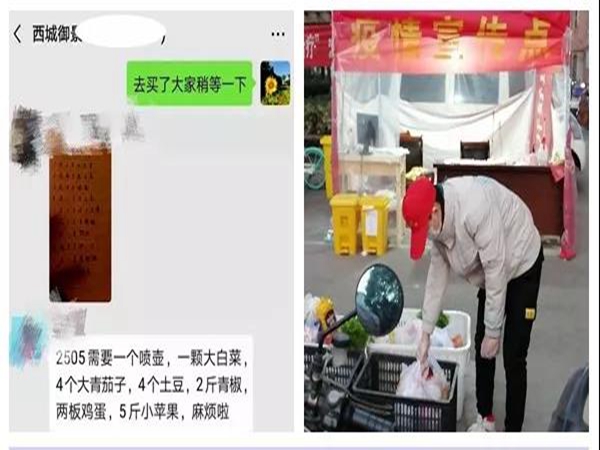 為保證被人員隔離期間的正常生活質(zhì)量,西湖社區(qū)全體黨員干部在黨總支書記龐少龍的帶領(lǐng)下,為隔離人員建立微信群,讓社區(qū)網(wǎng)格員第一時間看到大家的需求,社區(qū)網(wǎng)格員謝苗和周紅梅主動報名,每天為西城御景城的384戶居民代購生活物資。同時,“紅色代辦員”幫助居家隔離人員進(jìn)行心理疏導(dǎo),消除他們的顧慮,轉(zhuǎn)發(fā)防疫相關(guān)知識和視頻,科學(xué)防疫。
