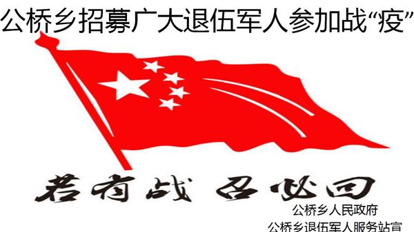 若有戰(zhàn),召必回,戰(zhàn)必勝,這是退伍軍人共同的誓言。一場沒有硝煙的疫情防控保衛(wèi)戰(zhàn)正在進行,當前疫情防控工作到了關(guān)鍵時期,黨員干部在前線勇敢沖鋒、保土安民,亟需一支生力軍加入戰(zhàn)斗,并肩戰(zhàn)“疫”。為了守護共同的美好家園,2月10日,公橋鄉(xiāng)通過網(wǎng)絡形式招募廣大退伍軍人參與戰(zhàn)“疫”,招募通知發(fā)出后,退伍軍人紛紛響應,踴躍報名。