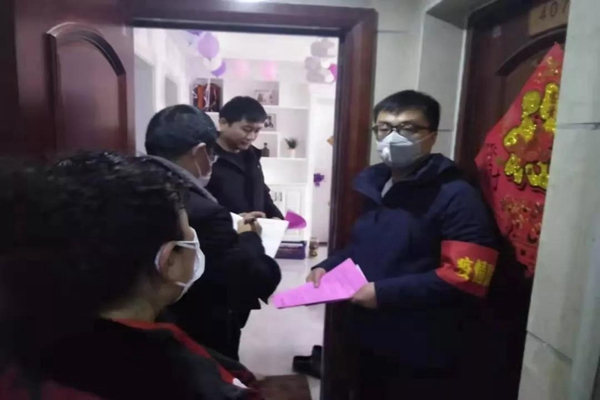 謝方方和丁巨民是區(qū)教育局選派到鼓樓街道西關外社區(qū)的兩名黨員同志,在社區(qū)書記韓影的帶領下逐戶對社區(qū)居民進行排查,排查過程中發(fā)現(xiàn)社區(qū)一小區(qū)有一名武漢返鄉(xiāng)人員,經(jīng)了解李先生是中轉武漢站,只短暫停留武漢站,兩位教育部門的黨員同志深入家中,登記其詳細信息、密切關注身體狀況、宣傳防疫知識。