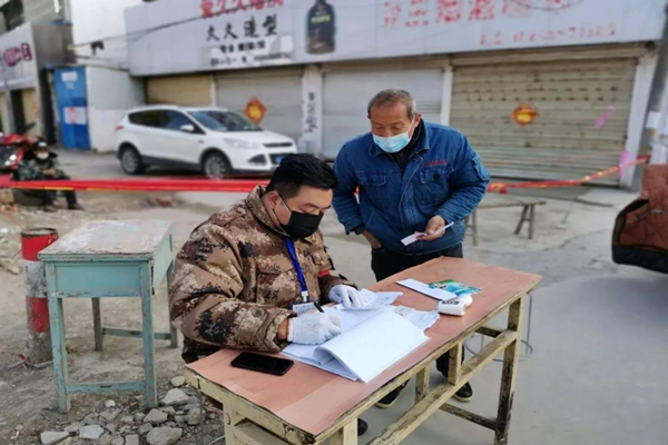 周學仁配合社區(qū)物業(yè)工作人員進行出入詢問并登記個人信息,“逢車必檢,逢人 必測?!薄安还苁情_車還是走路的,一個都不能少”,周學仁用自己的這份責任心牢牢“把守”著小區(qū)的大門,小區(qū)業(yè)主王先生說:“雖然每天進出需要登記,但是看到值守人員為了大家不辭辛苦,我們作為被保護者,更要支持!”