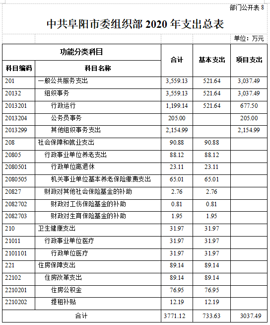 2.中共阜陽市委組織部2020年一般公共預(yù)算支出表