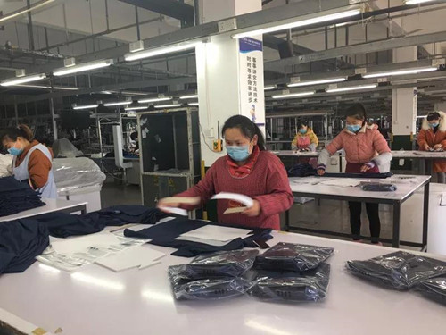 成立疫情防控領(lǐng)導(dǎo)小組、制定疫情防控方案、摸排返崗員工信息,在先期準備2萬只口罩和足量消毒液等防控物資后,新馬制衣第一時間向潁上縣經(jīng)信部門提交了復(fù)工申請,第二天便收到批復(fù)。一手抓防疫、一手抓生產(chǎn),短短幾天,企業(yè)產(chǎn)能已恢復(fù)50%。