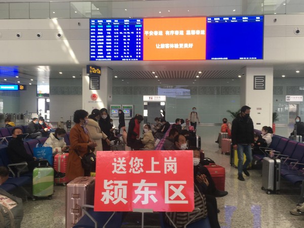 潁東區(qū)積極開展“送您上崗”活動(dòng),按照“防運(yùn)并舉、簡(jiǎn)化程序、安全高效、便利通行”的原則,通過鄉(xiāng)鎮(zhèn)、村逐一摸排每名外出務(wù)工人員返程意愿,人社、交通、衛(wèi)健等多部門密切協(xié)同,為返崗人員開通外出務(wù)工“綠色通道”,包專車把返崗務(wù)工人員送到阜陽(yáng)西站,引導(dǎo)有序接受上車前和候車期間體溫測(cè)量和身份核驗(yàn),就坐指定候車區(qū)域,確保返程快檢、快進(jìn)、快登乘、快出站,真正做到復(fù)工、防疫兩不誤。