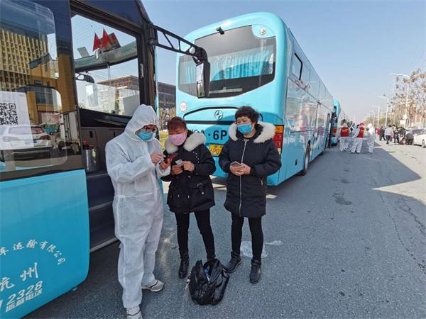 為確保群眾的生命健康,阜南縣組織縣交通、人社、衛(wèi)生部門聯(lián)合制定疫情防控措施,要求各鄉(xiāng)鎮(zhèn)設(shè)立統(tǒng)一乘車點,所有集中乘車人員嚴格按照疫情防控要求進行實名制登記及健康檢查合格后統(tǒng)一乘車,嚴格把控上座率不高于50%,定期消殺,并安排鄉(xiāng)鎮(zhèn)專職人員跟車服務(wù)。在現(xiàn)場,準備啟程外出就業(yè)的老鄉(xiāng)們,依次測量體溫,提供健康證明有序上車。