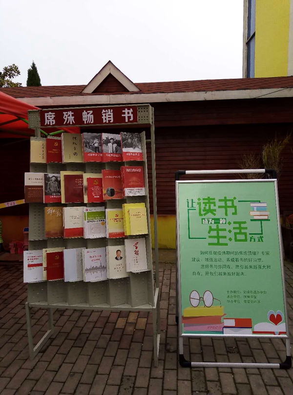 為豐富轄區(qū)居民的文化生活,緩解居民防疫期間的恐慌和焦慮情緒,2020年3月,文峰街道開展“書屋進(jìn)小區(qū)”活動,這一新的便民服務(wù)措施深得群眾喜愛。在易景國際小區(qū)和市政府家屬院便民服務(wù)點設(shè)置了警戒線、等待間隔線,書店售賣員均配置一次性手套,測量居民體溫,對居民和書本進(jìn)行酒精消毒。同時,推出線上購書活動,通過小程序、微信等方式購買圖書,由小區(qū)臨時黨支部黨員送達(dá)居民手中,真正做到便利、快捷、安全。