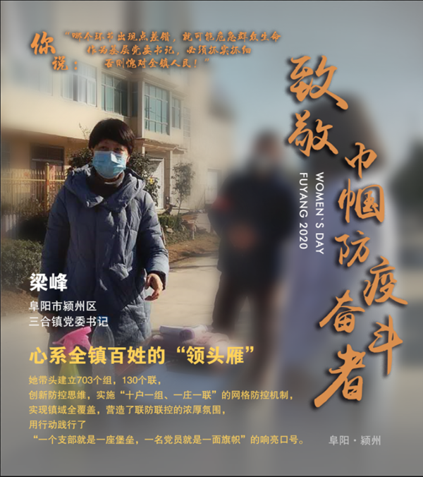 在潁州這些逆行的隊(duì)伍中,躍動(dòng)著一群特殊的身影,她們響應(yīng)黨組織號(hào)召,用堅(jiān)韌和耐心把守著每一道防線、每一處關(guān)卡,豎起了一道風(fēng)景、一種精神,撐起了逆行中的半邊天。