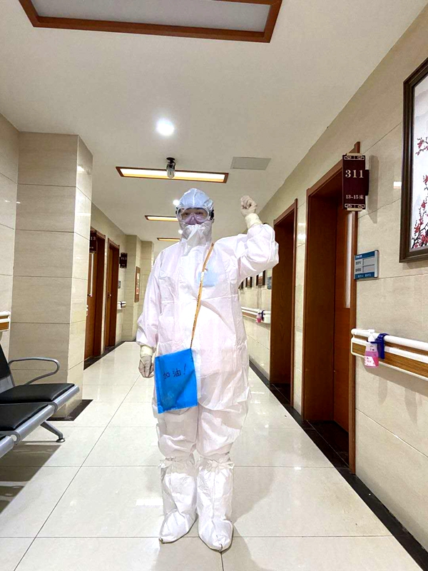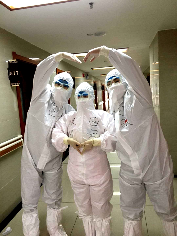 “一件防護服要穿好幾個小時,一天下來不敢喝水,因為上廁所穿脫不方便,每天長時間帶著口罩感覺呼吸困難,護目鏡經(jīng)常會糊掉,好幾次看不清,同事們就來搭把手,心里很暖。”閆莉說,只有親身經(jīng)歷過,才能真正體會到隔離觀察工作的不易和艱辛。