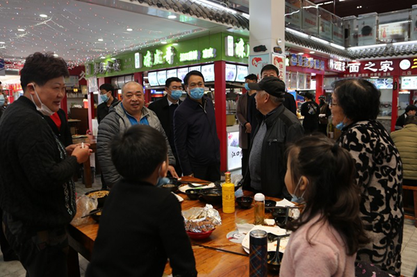 在潁陽美食廣場,經(jīng)營戶大多已開門營業(yè),一些市民正在這里品嘗特色小吃,黃琦每走到一家店鋪前,詳細詢問經(jīng)營情況。經(jīng)營戶們反映,這段時間客流量逐漸恢復(fù),營業(yè)額也已接近正常水平。黃琦要求縣市場監(jiān)管部門要將各項支持政策匯編成明白紙,及時發(fā)放到經(jīng)營戶手中,引導廣大經(jīng)營戶樹立信心,共渡難關(guān)。