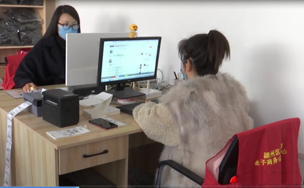 三塔集鎮(zhèn)電子商務(wù)服務(wù)中心工作人員線上銷售農(nóng)產(chǎn)品