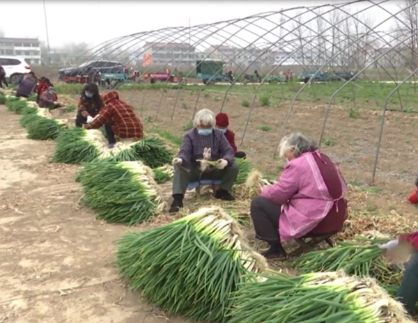 通過(guò)電商平臺(tái),原本滯銷的大蔥成功對(duì)接各大商超、社區(qū)、消費(fèi)者。農(nóng)產(chǎn)品銷路暢通,也打開了農(nóng)民的增收之門。在這里務(wù)工的貧困戶申治芳也因?yàn)榇笫[能夠及時(shí)銷售出去,對(duì)穩(wěn)定脫貧不返貧充滿信心?!艾F(xiàn)在東西賣得好了,俺的活也多了,收入也穩(wěn)定了,順順當(dāng)當(dāng)脫貧基本沒(méi)啥問(wèn)題?!鄙曛畏颊f(shuō)。