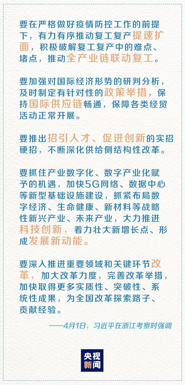 4月1日上午,正在浙江考察的習(xí)近平總書(shū)記對(duì)統(tǒng)籌推進(jìn)疫情防控和經(jīng)濟(jì)社會(huì)發(fā)展工作作出了重要指示。如何克服疫情的影響恢復(fù)經(jīng)濟(jì)社會(huì)秩序,有力有序推動(dòng)復(fù)工復(fù)產(chǎn)?習(xí)近平總書(shū)記的重要講話(huà)為我們指明了清晰的方向。