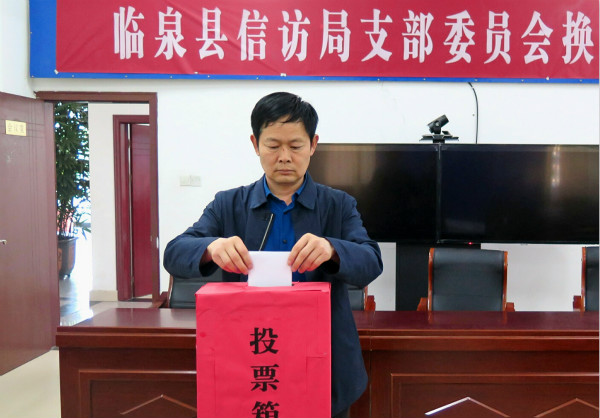 2020年4月24日下午,中共臨泉縣政府信訪局支部委員會(huì)換屆選舉大會(huì)在局機(jī)關(guān)會(huì)議室召開,局黨支部15名黨員參加,會(huì)議由王世超同志主持,局黨組班子全體成員參加。
