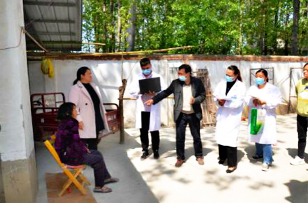 調(diào)研組首先來(lái)到郭橋村小劉莊自然村王其英家中,院門敞開(kāi)著,在村干部帶領(lǐng)下調(diào)研組一行走進(jìn)院內(nèi),三間主房大門緊閉,右手邊有幾間旁房,村干部指著進(jìn)院過(guò)道右側(cè)小門:“王其英就住在這里面,平時(shí)獨(dú)自居住,獨(dú)自生活,日常自己只烹麥仁果腹?!滨U學(xué)峰推開(kāi)小木門,屋內(nèi)光線暗淡,靠西邊窗下坐著一個(gè)蓬頭垢面、骨瘦如柴的老太婆,見(jiàn)有生人開(kāi)門,眼里散發(fā)著呆滯的目光,嘴里說(shuō)著不作邊際的話語(yǔ)。聽(tīng)到村干部的介紹,又看到此情此景,鮑學(xué)峰當(dāng)即安排評(píng)殘小組填表登記,進(jìn)行評(píng)估鑒定。在填寫(xiě)表格時(shí),得知她不配合派出所照相等原因未能取得身份證時(shí),評(píng)殘小組特事特辦,采取手機(jī)拍照采像,戶口本提取身份證號(hào)碼個(gè)人信息,填好《中華人民共和國(guó)殘疾人證申領(lǐng)表》,經(jīng)專業(yè)醫(yī)生現(xiàn)場(chǎng)評(píng)估鑒定為精神二級(jí)殘。