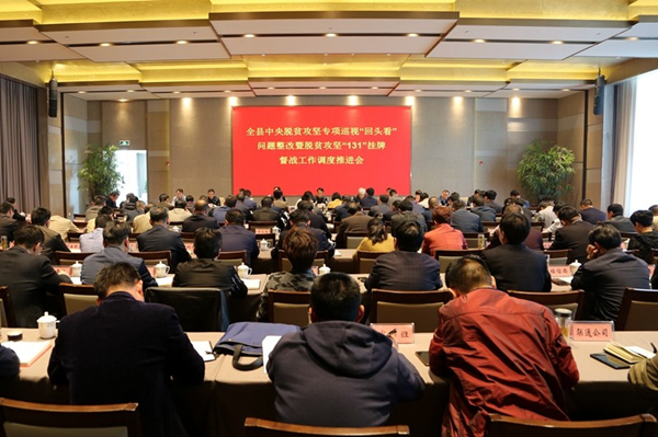 會(huì)議傳達(dá)學(xué)習(xí)了習(xí)近平總書記關(guān)于巡視整改有關(guān)重要論述及有關(guān)文件精神;通報(bào)了全縣中央脫貧攻堅(jiān)專項(xiàng)巡視“回頭看”問題整改情況。縣扶貧開發(fā)局、楊湖鎮(zhèn)、南照鎮(zhèn)分別匯報(bào)了本單位中央脫貧攻堅(jiān)專項(xiàng)巡視“回頭看”問題整改進(jìn)度。各鄉(xiāng)鎮(zhèn)扶貧開發(fā)領(lǐng)導(dǎo)小組第一組長(zhǎng)匯報(bào)了近期排查走訪工作開展情況,并指出了排查中發(fā)現(xiàn)的問題。