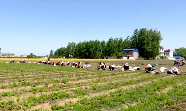 在潁州區(qū)馬寨鄉(xiāng)申郢村中藥材種植基地,村民們正在采收元胡和貝母。今年基地首次采取元胡、貝母兩種作物套種的方式,利用有限的土地資源增產(chǎn)增收。