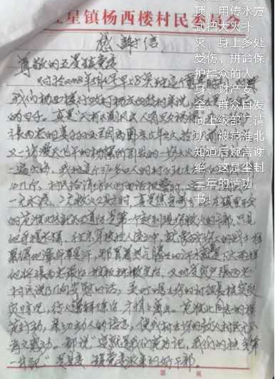 ●楊西樓村群眾聯(lián)名書寫感謝信