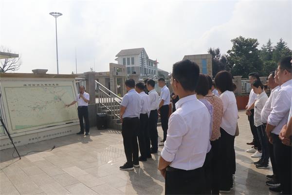 為進(jìn)一步學(xué)習(xí)弘揚(yáng)王家壩精神,提振黨員干部干事創(chuàng)業(yè)的精氣神。6月19日,阜南縣委組織部機(jī)關(guān)黨支部組織黨員干部到王家壩閘、王家壩抗洪紀(jì)念展廳和鄭臺(tái)孜莊臺(tái)等地,實(shí)地開展了一堂“王家壩精神精品黨課”教育活動(dòng)?;顒?dòng)由王家壩鎮(zhèn)黨委副書記、鎮(zhèn)長(zhǎng)余海闊主講。
