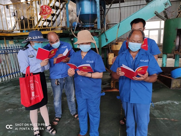 在生產(chǎn)車間里,司法所工作人員向在場員工發(fā)放普法宣傳單、法律知識手冊,告誡工人在生產(chǎn)的時候要注意做好個人的防護(hù),疫情遠(yuǎn)遠(yuǎn)沒有結(jié)束,還不能麻痹大意。對企業(yè)的股東,劉所長予以勉勵,雖然現(xiàn)在經(jīng)濟不是很景氣,但是只要我們眾志成城,就一定會渡過難關(guān)。然后向企業(yè)管理人員及員工講解如何正確使用法律維護(hù)自身權(quán)益不受侵害,如何合法、誠信經(jīng)營。同時鼓勵員工積極學(xué)習(xí)法律法規(guī),學(xué)會用法律武器來保護(hù)自己;叮囑企業(yè)經(jīng)營者遵守國家相關(guān)法律法規(guī),做到合法、誠信經(jīng)營,并承諾對社會承擔(dān)起應(yīng)有的責(zé)任。