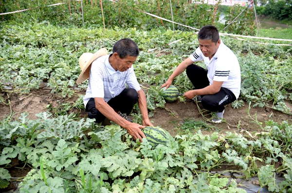 “我們村一些群眾靠種西瓜增收,但是大多在技術(shù)上有局限性,而且一般品種的西瓜幾乎是同時(shí)上市,銷售慢、價(jià)格低,增收效果不佳。因此我們考慮,幫助種植戶引進(jìn)一個(gè)高品質(zhì)、能存放、可運(yùn)輸?shù)男缕贩N,這樣的話,既能避開銷售堵點(diǎn),又能賣上價(jià)格?!眲偃A村扶貧第一書記、黨員曾亞民說。當(dāng)初就是抱著這個(gè)想法,他特意把有名的西瓜種植能手魏照山引薦給朱占前,勸導(dǎo)他與魏照山合作,在原有的種植基礎(chǔ)上,嘗試引進(jìn)新品種,從品質(zhì)和銷售上做文章,從而實(shí)現(xiàn)快速增收致富。