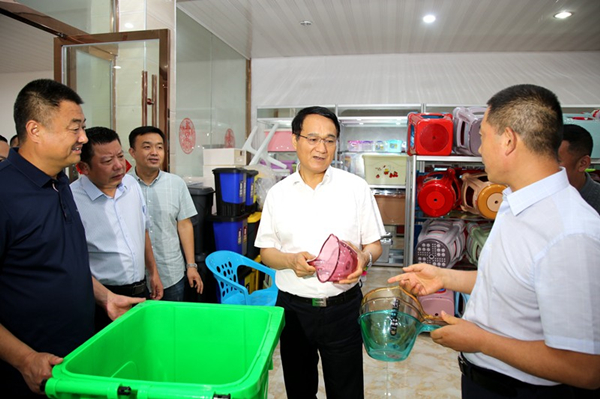 會(huì)后,黃琦來到夏橋鎮(zhèn)工業(yè)集聚區(qū)——潁上縣龍?jiān)P(yáng)工貿(mào)有限公司,調(diào)研指導(dǎo)項(xiàng)目征地拆遷工作。黃琦走進(jìn)企業(yè)生產(chǎn)車間和產(chǎn)品展示中心,深入了解企業(yè)生產(chǎn)經(jīng)營情況。黃琦要求,企業(yè)要增強(qiáng)全局意識(shí),著眼未來,立足長遠(yuǎn),算大帳、算遠(yuǎn)賬,堅(jiān)持危中尋機(jī),努力在企業(yè)搬遷中尋找發(fā)展新機(jī)遇,進(jìn)一步做強(qiáng)企業(yè)、做優(yōu)品牌,助力潁上縣域經(jīng)濟(jì)社會(huì)高質(zhì)量發(fā)展。夏橋鎮(zhèn)黨委政府和潁上經(jīng)開區(qū)管委會(huì)要強(qiáng)化服務(wù)意識(shí),主動(dòng)幫助企業(yè)協(xié)調(diào)解決搬遷過程中存在的問題,更好服務(wù)實(shí)體經(jīng)濟(jì)發(fā)展。