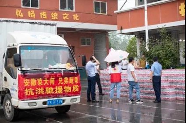 愛心企業(yè)送溫暖。嚴(yán)峻的汛情也牽動(dòng)著社會(huì)各界的心,許多愛心企業(yè)和個(gè)人紛紛向往防汛一線送“溫暖”。7月23日上午,臨泉菜大師弟兄農(nóng)業(yè)供港蔬菜基地裝送菜心準(zhǔn)備運(yùn)往王家壩,慰問正在搶險(xiǎn)的一線防汛人員。捐贈(zèng)的物品有礦泉水、方便面,還有菜心、洋蔥等生活物資。