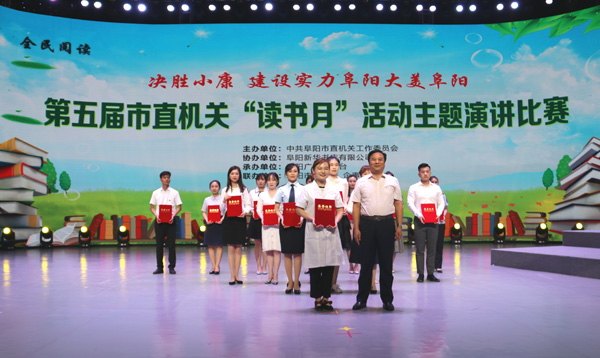 中共阜陽(yáng)市直機(jī)關(guān)工委書記李濤和第五屆市直機(jī)關(guān)“讀書月”活動(dòng)主辦協(xié)辦承辦單位領(lǐng)導(dǎo)參加活動(dòng)并為獲獎(jiǎng)選手頒獎(jiǎng)。