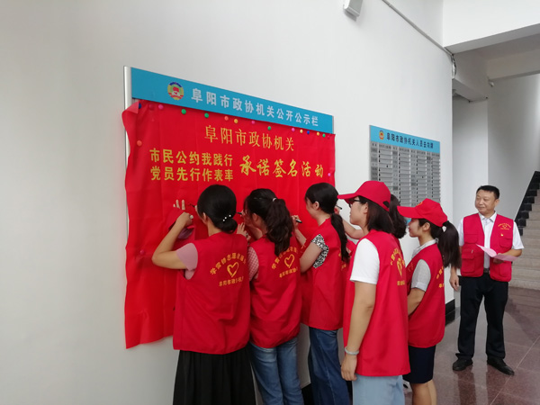 活動(dòng)現(xiàn)場(chǎng),市政協(xié)機(jī)關(guān)黨員統(tǒng)一學(xué)習(xí)了“創(chuàng)建文明城市應(yīng)知應(yīng)會(huì)”和“阜陽(yáng)市民文明公約”等內(nèi)容,并進(jìn)行“市民公約我踐行,黨員先行作表率”承諾簽名。隨后,機(jī)關(guān)黨員深入到順昌社區(qū)和包保路段,發(fā)放和宣傳“創(chuàng)建文明城市應(yīng)知應(yīng)會(huì)”和“阜陽(yáng)市民文明公約”等宣傳資料,對(duì)包保路段車(chē)輛亂停亂放進(jìn)行勸阻,對(duì)地面垃圾和雜物進(jìn)行清理。