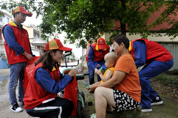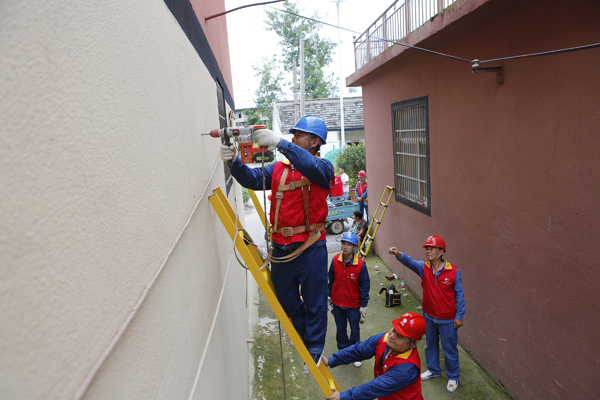 為進一步提高脫貧攻堅工作成效,國網(wǎng)阜陽供電公司“小紅帽”共產(chǎn)黨員服務(wù)隊結(jié)合“集中幫扶走訪幫扶月”“五個一”活動,即開展一次調(diào)研、宣講一次黨課、進行一次家訪、辦好一些實事、開展一次志愿服務(wù),為貧困戶開展安全用電排查志愿服務(wù)。進入8月以來,阜陽市持續(xù)的高溫挑起全市用電量迅速攀升,電網(wǎng)負荷連續(xù)兩次破歷史記錄,確保貧困村百姓安全用電成為黨員服務(wù)隊關(guān)心的頭等大事。當天氣溫達35℃以上,驕陽酷暑。三十余名服務(wù)隊員分四組,在東楊莊、西楊莊一邊向群眾介紹著安全用電知識、一邊整理線路,汗水浸透了服務(wù)隊員的工裝。