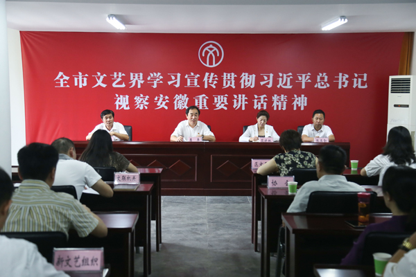8月25日,阜陽市文學(xué)藝術(shù)界聯(lián)合會召開專題會議,學(xué)習(xí)宣傳貫徹習(xí)近平總書記視察安徽重要講話精神和扎實推進長三角一體化發(fā)展座談會上的重要講話精神。市文聯(lián)全體人員,各所屬文藝家協(xié)會主席、秘書長,三區(qū)文聯(lián)主席和新文藝組織、新文藝群體代表參加了會議。與會人員認真學(xué)習(xí)了習(xí)近平總書記視察安徽重要講話精神和扎實推進長三角一體化發(fā)展座談會上的重要講話精神。