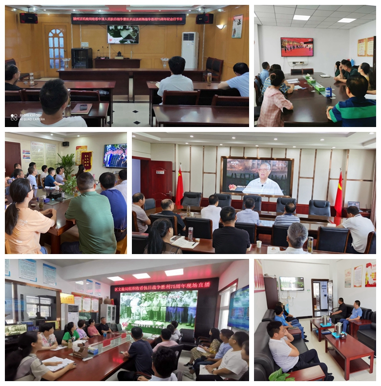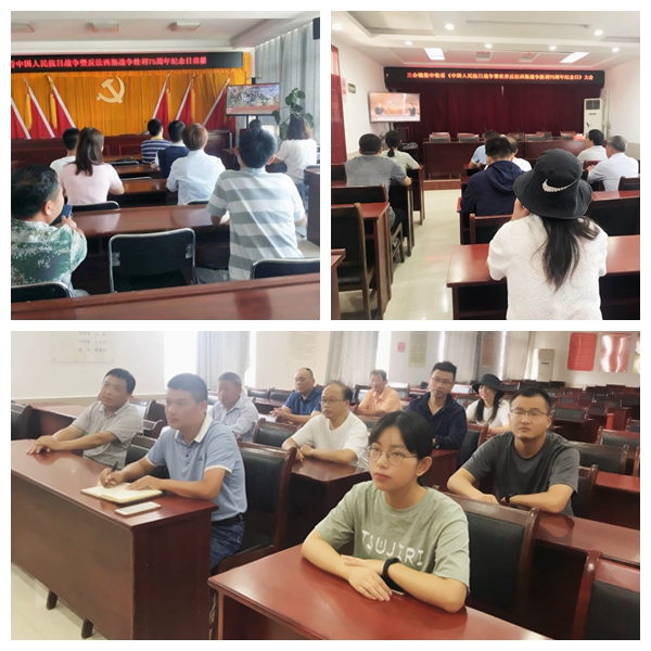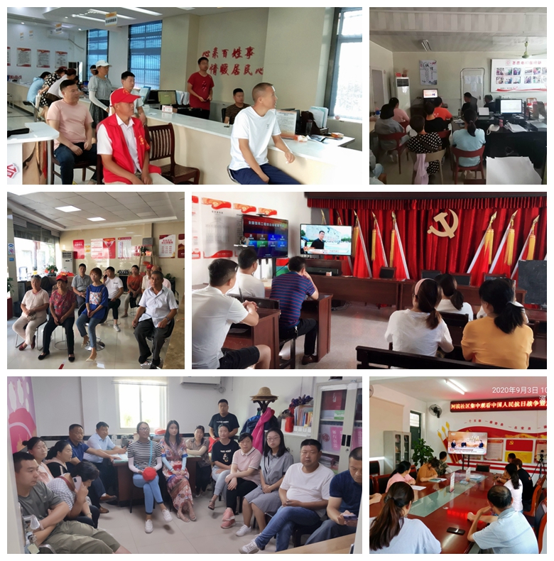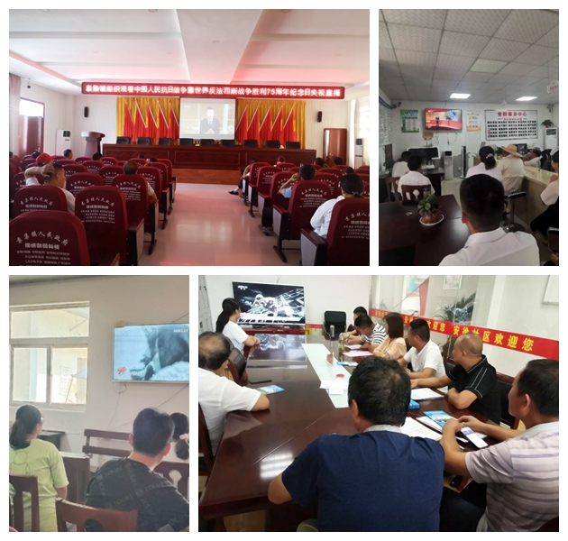 2020年9月3日是中國人民抗日戰(zhàn)爭(zhēng)暨世界反法西斯戰(zhàn)爭(zhēng)勝利75周年紀(jì)念日,上午10時(shí),習(xí)近平等黨和國家領(lǐng)導(dǎo)人同首都各界代表一起,在中國人民抗日戰(zhàn)爭(zhēng)紀(jì)念館向抗戰(zhàn)烈士敬獻(xiàn)花籃。根據(jù)中央、省、市和區(qū)有關(guān)工作通知要求,全區(qū)各級(jí)基層黨組織及廣大黨員干部群眾利用遠(yuǎn)程教育終端站點(diǎn)收看活動(dòng)直播。