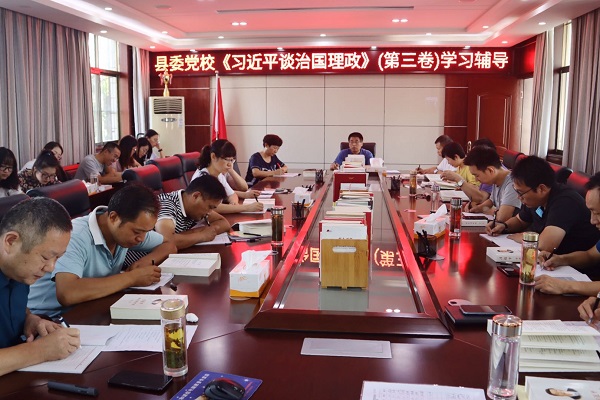 為扎實提高黨員干部的理論水平,提升黨員干部全面把握習近平習近平新時代中國特色社會主義思想的能力,9月8日上午,太和縣委黨校召開學習輔導會,由高級講師韓朝仁帶領全體教職工專題學習1-3專題。