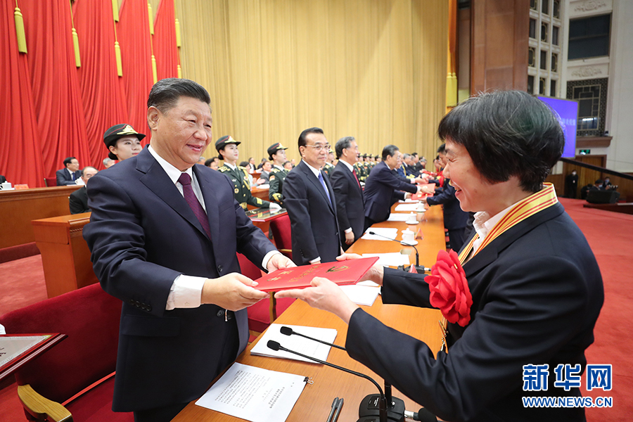 9月8日,全國(guó)抗擊新冠肺炎疫情表彰大會(huì)在北京人民大會(huì)堂隆重舉行。中共中央總書(shū)記、國(guó)家主席、中央軍委主席習(xí)近平向“人民英雄”國(guó)家榮譽(yù)稱(chēng)號(hào)獲得者陳薇頒授獎(jiǎng)?wù)?。新華社記者 申宏 攝