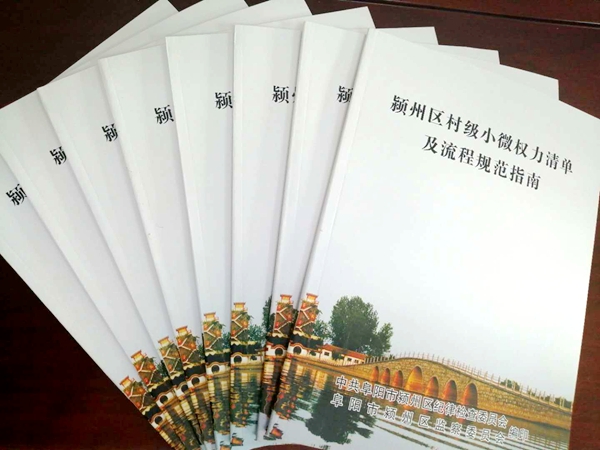 流程化曬權(quán)促公開(kāi)。根據(jù)村級(jí)權(quán)力清單,制定了“四議兩公開(kāi)一監(jiān)督”、農(nóng)村集體資產(chǎn)資源處置等工作流程,明確每個(gè)清單的主管部門(mén)、所需材料、辦理時(shí)限、公示期限等具體細(xì)節(jié),繪制《潁州區(qū)村級(jí)“小微權(quán)力”清單及流程規(guī)范指南》及村級(jí)權(quán)力運(yùn)行流程圖,讓權(quán)力清單簡(jiǎn)明易懂,群眾按圖辦事、村干部照單履職,進(jìn)一步提高群眾辦事的透明度和時(shí)效性。