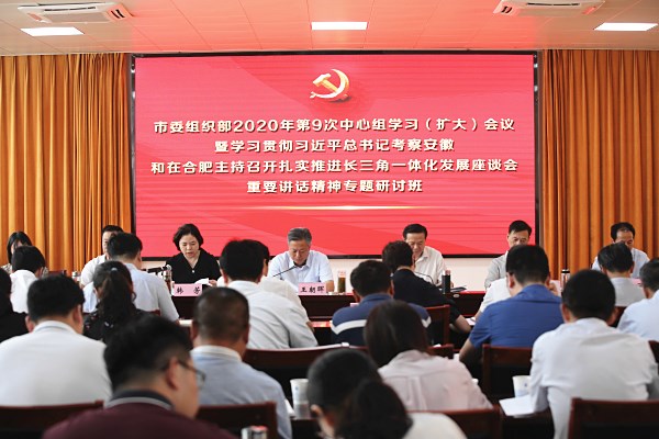 9月14日至16日,市委組織部舉行理論學(xué)習(xí)中心組學(xué)習(xí)(擴(kuò)大)會(huì)議暨學(xué)習(xí)貫徹習(xí)近平總書記考察安徽和在合肥主持召開扎實(shí)推進(jìn)長(zhǎng)三角一體化發(fā)展座談會(huì)重要講話精神專題研討班。市委常委、組織部長(zhǎng)王朝暉出席會(huì)議。