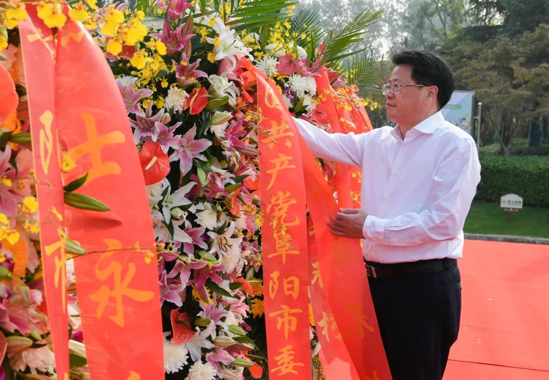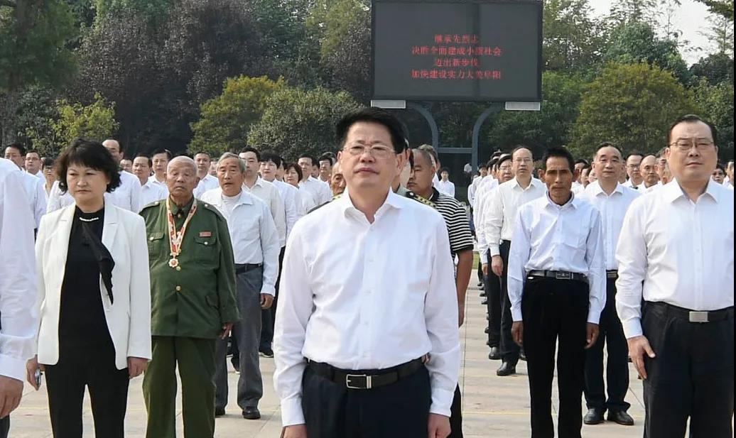 副省長、市委書記楊光榮,市委副書記、市長孫正東,胡明瑩、李志偉、劉玉杰、王玉峰、王朝暉、張家忠、章紹偉、王波、白曉云、王洪元等市黨政軍領導來到阜陽市革命烈士紀念館,同社會各界代表一起,深切緬懷英烈們的不朽功勛,深情寄托對烈士們的無限哀思。