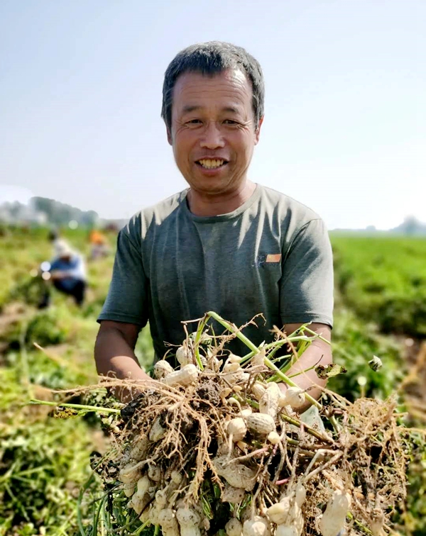 圖為三合鎮(zhèn)三星村供銷合作社種植的花生豐收