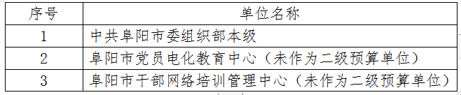納入中共阜陽市委組織部2019年度部門決算編制范圍的二級單位共2個,詳細(xì)情況見下表: