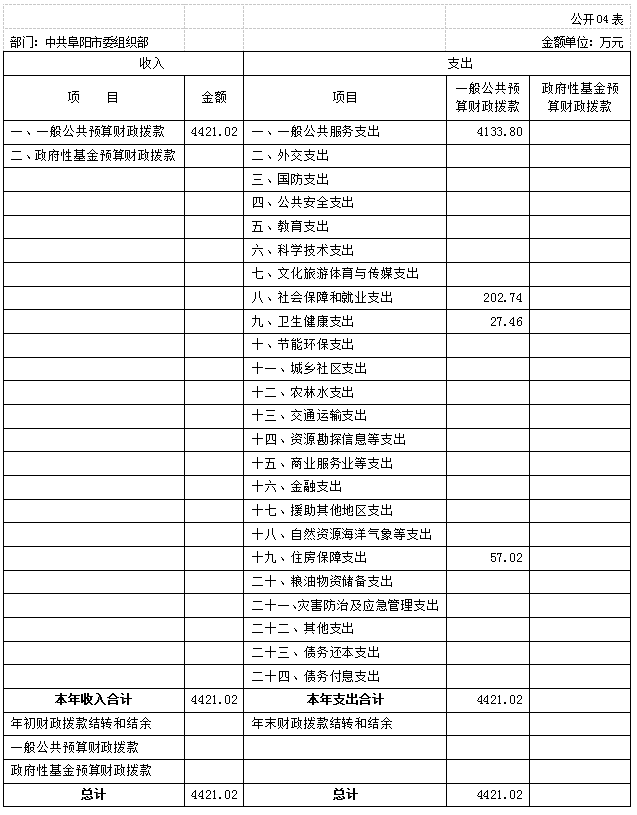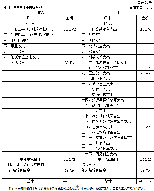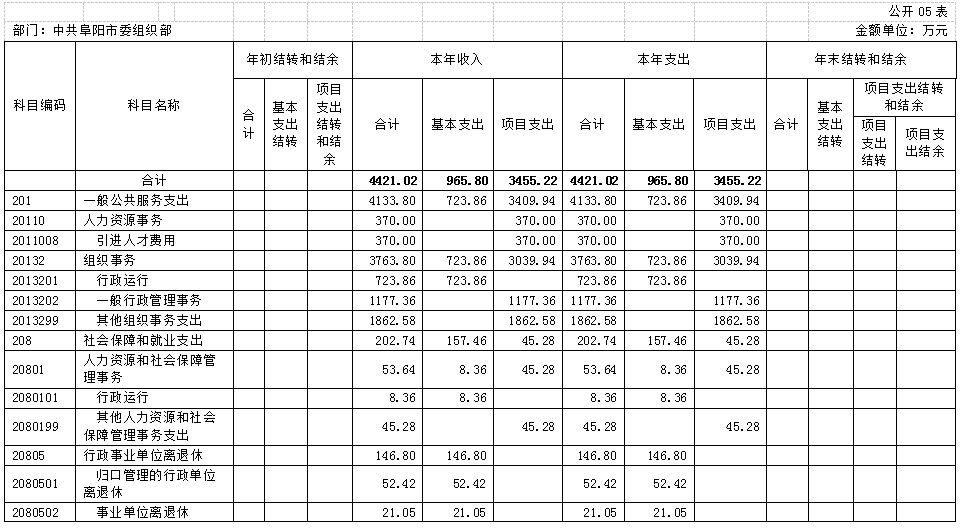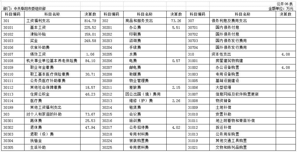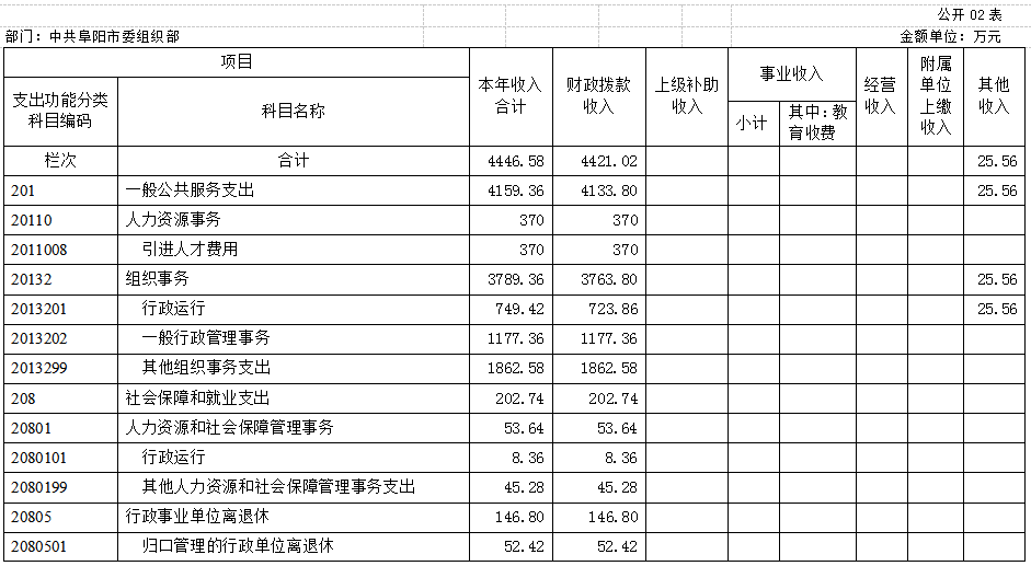 第二部分 中共阜陽市委組織部2019年度部門決算表