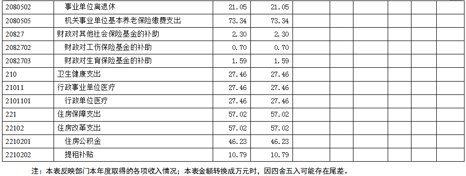 8.社會保障和就業(yè)支出(類)行政事業(yè)單位離退休(款)事業(yè)單位離退休(項)。年初預(yù)算為20.68萬元,支出決算為21.05萬元,完成年初預(yù)算的101.79%,決算數(shù)大于預(yù)算數(shù)的主要原因是工資正常增長,人員經(jīng)費增加。