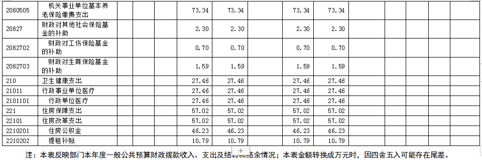 9.社會保障和就業(yè)支出(類)行政事業(yè)單位離退休(款)機關(guān)事業(yè)單位基本養(yǎng)老保險繳費支出(項)。年初預(yù)算為69.59萬元,支出決算為73.34萬元,完成年初預(yù)算的105.39%,決算數(shù)大于預(yù)算數(shù)的主要原因是工資正常增長,人員經(jīng)費增加。