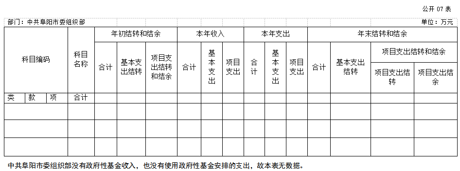 中共阜陽市委組織部沒有政府性基金收入,也沒有使用政府性基金安排的支出。