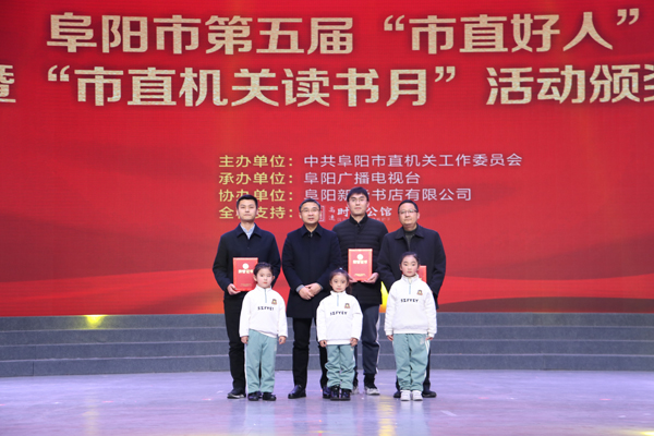 頒獎(jiǎng)會(huì)上,播放了第五屆阜陽(yáng)“市直好人”專(zhuān)題片。與會(huì)領(lǐng)導(dǎo)為市司法局符慶超等16名阜陽(yáng)市第五屆“市直好人”;市委辦袁帥鋒等23位“爭(zhēng)創(chuàng)模范機(jī)關(guān)”優(yōu)秀征文獲獎(jiǎng)?wù)吆透逢?yáng)市煙草專(zhuān)賣(mài)局機(jī)關(guān)黨委等9個(gè)第五屆“市直機(jī)關(guān)讀書(shū)月”活動(dòng)優(yōu)秀組織獎(jiǎng)黨組織頒發(fā)了榮譽(yù)證書(shū)。