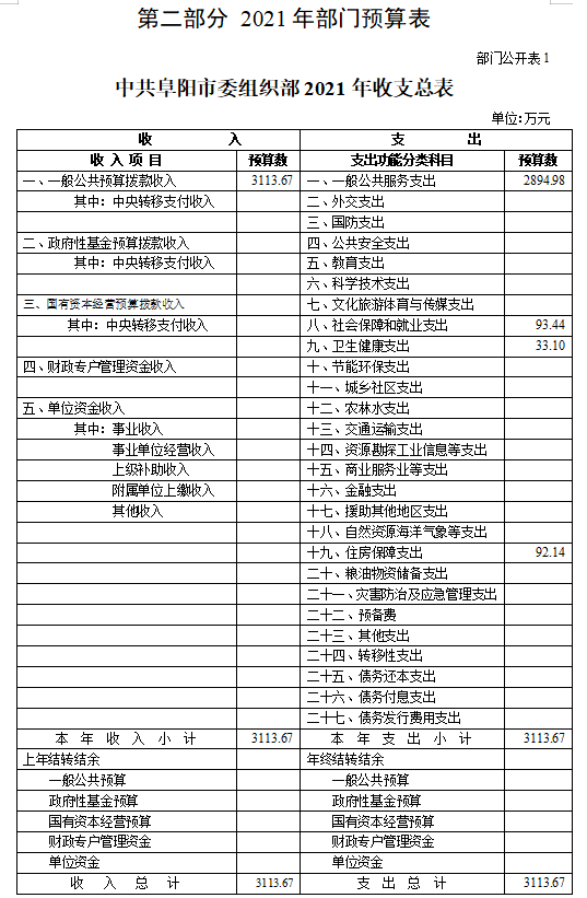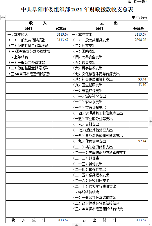 4.中共阜陽市委組織部2021年財(cái)政撥款收支總表