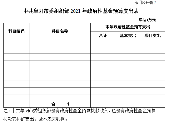 7.中共阜陽市委組織部2021年政府性基金預(yù)算支出表