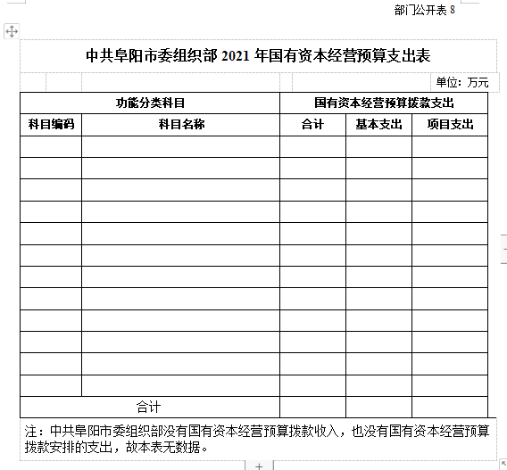 8.中共阜陽市委組織部2021年國有資本經(jīng)營預(yù)算支出表