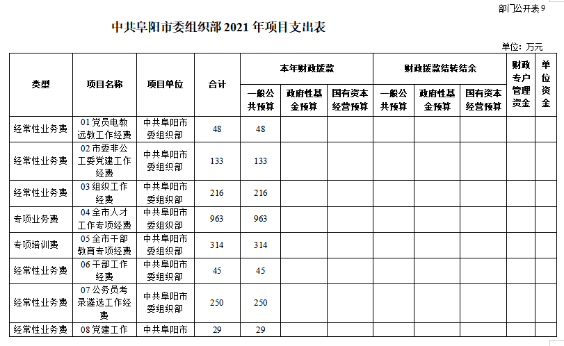9.中共阜陽市委組織部2021年項(xiàng)目支出表