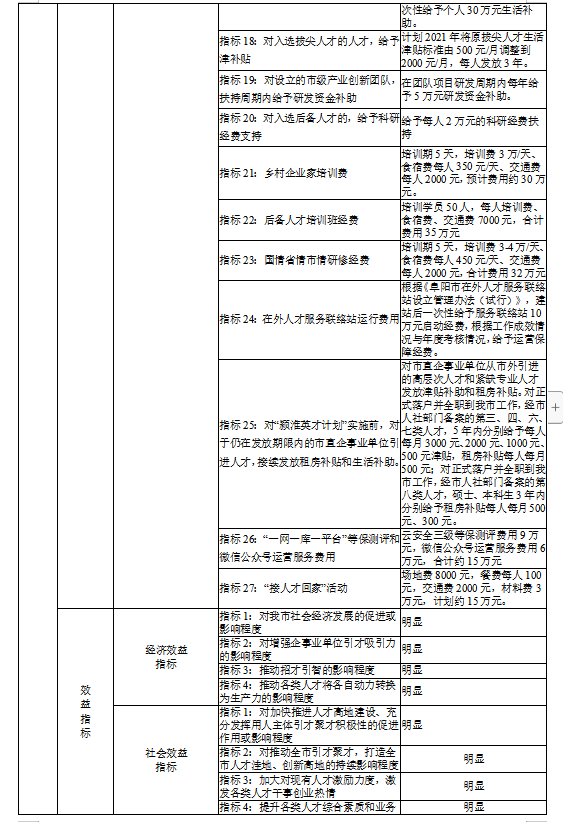 (5)項(xiàng)目內(nèi)容。全面貫徹落實(shí)“人才發(fā)展體制機(jī)制改革”“潁淮英才計(jì)劃”“促進(jìn)企業(yè)人才建設(shè)20條”,把握住引才、育才、用才、留才等各個(gè)環(huán)節(jié),以實(shí)施重點(diǎn)人才工程為抓手,加大激勵(lì)表彰獎(jiǎng)補(bǔ)力度,著力提高區(qū)域人才競爭優(yōu)勢。