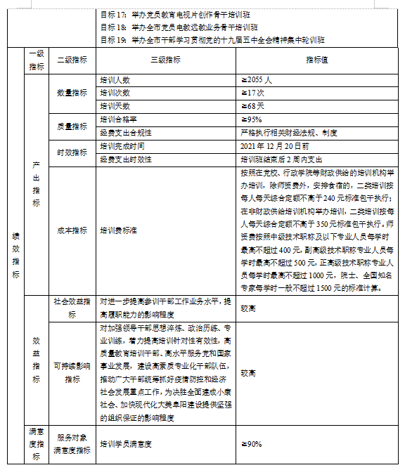 (5)項(xiàng)目內(nèi)容:計(jì)劃舉辦貫徹黨員教育管理工作條例及黨組工作條例示范培訓(xùn)班,提升基層黨組織組織力示范培訓(xùn)班,黨務(wù)工作者示范培訓(xùn)班,換屆后新任村‘兩委’正職示范培訓(xùn)班,全市黨建引領(lǐng)信用村建設(shè)培訓(xùn)班,扶持壯大村級集體經(jīng)濟(jì)培訓(xùn)班,新任選派幫扶干部示范培訓(xùn)班,全市非公企業(yè)和社會(huì)組織黨組織書記示范培訓(xùn)班,市直選派黨建工作指導(dǎo)員示范培訓(xùn)班,全市非公企業(yè)出資人、社會(huì)組織負(fù)責(zé)人暨新生代經(jīng)營管理人才示范培訓(xùn)班,全市社區(qū)黨組織書記示范培訓(xùn)班,全市選調(diào)生初任培訓(xùn)班,市直機(jī)關(guān)公務(wù)員(參公人員)工資福利業(yè)務(wù)培訓(xùn)班,優(yōu)秀公務(wù)員能力提升培訓(xùn)班,全市干部在線學(xué)習(xí)管理員業(yè)務(wù)培訓(xùn)班,黨員教育電視片創(chuàng)作骨干培訓(xùn)班,全市黨員電教遠(yuǎn)教業(yè)務(wù)骨干培訓(xùn)班和全市干部學(xué)習(xí)貫徹黨的十九屆五中全會(huì)精神集中輪訓(xùn)班等班次以及上繳全市網(wǎng)絡(luò)培訓(xùn)經(jīng)費(fèi)。